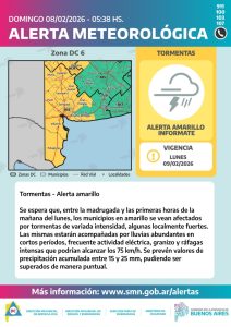 El Servicio Meteorológico mantiene vigente una alerta amarilla por tormentas que alcanzará a Bahía Blanca entre la medianoche y las 6 de la mañana del lunes, mientras que para Corti y Cabildo la advertencia comenzará durante la noche del domingo.