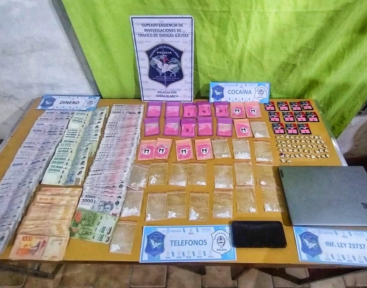 Moyano tenía en su pantalón una bolsa tipo ziploc y varios envoltorios con cocaína que sumaban un total de 61,9 gramos, en la guantera del vehículo encontraron fajos de billetes con más de 4 millones de pesos.
