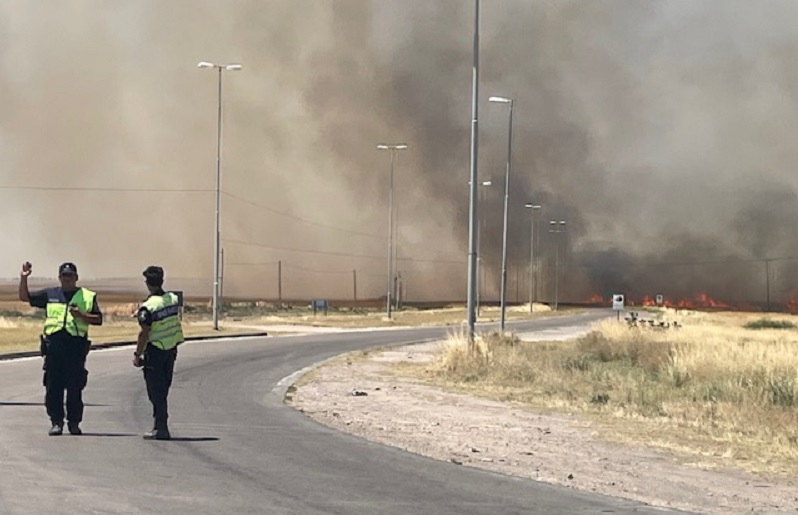 Ante el avance del fuego y la intensa presencia de humo en el acceso, se decidió evacuar el edificio de la terminal aérea. El tránsito fue interrumpido en ambas direcciones por la Policía de la Provincia y personal de la caminera. Inicialmente, los pasajeros fueron trasladados hacia la plataforma comercial, donde estacionan los aviones, aunque luego debieron reingresar al edificio cuando el humo comenzó a afectar también ese sector.