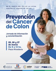 BAHIA BLANCA: Jornadas de prevención del Cáncer de Colon  En el marco del Día de la Lucha contra el Cáncer de Colon, que tiene lugar cada 31 de marzo, la plaza Rivadavia será sede durante tres días de jornadas de prevención y concientización.