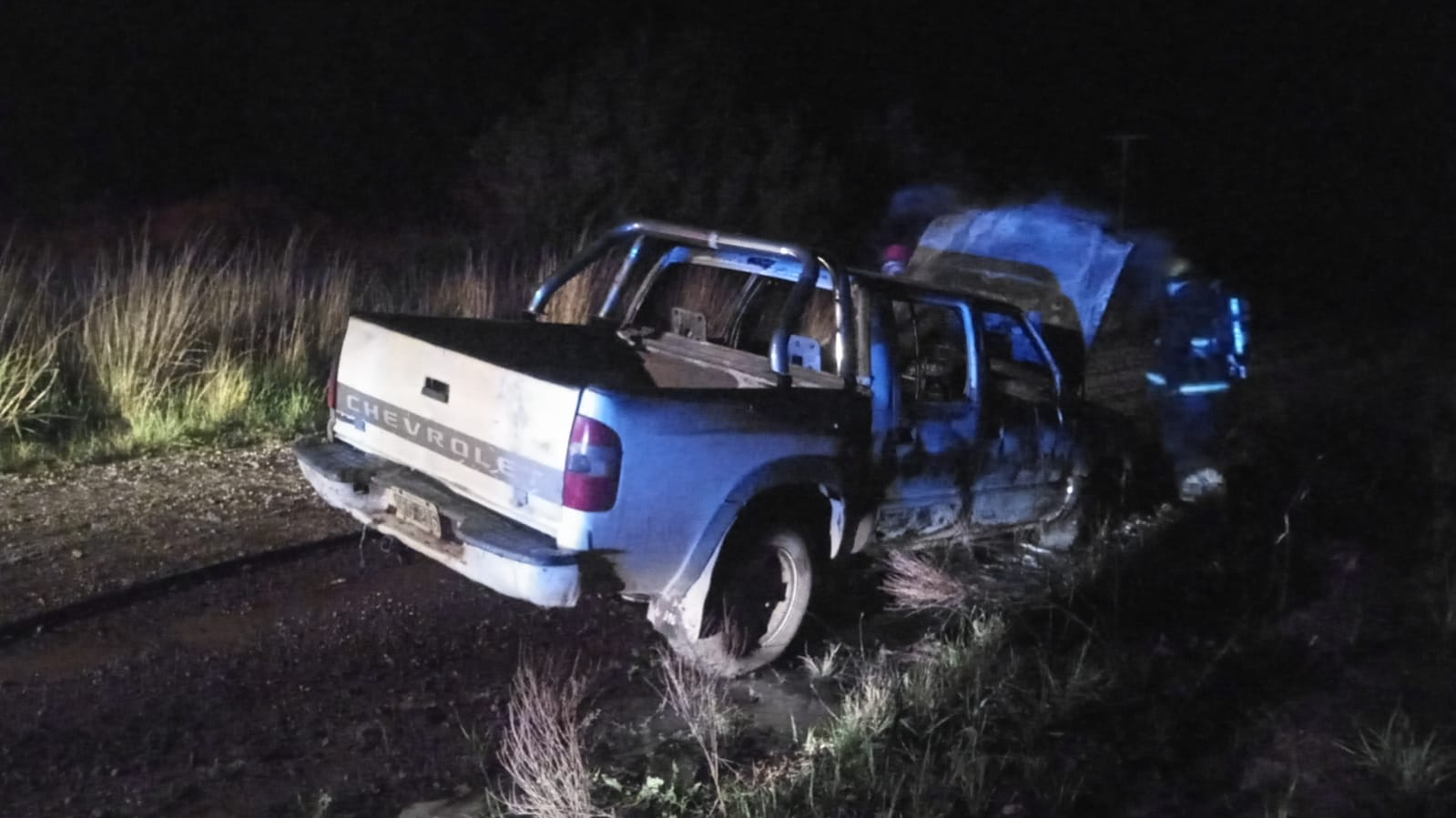 Minutos antes de las 21 horas, camino al sector rural conocido como «Colonia Laure», a la altura de la chacra Pedreschi, una camioneta se incendió casi por completo.