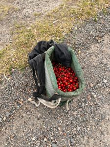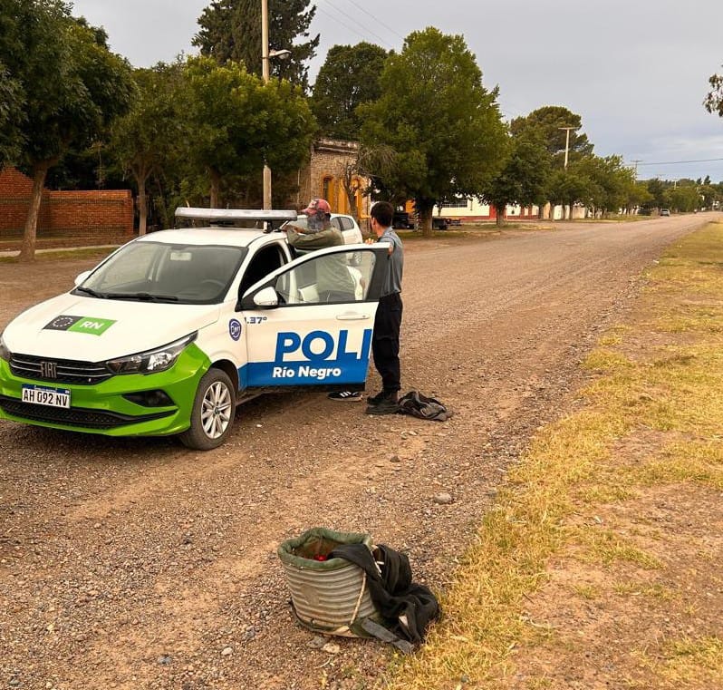 El sujeto en cuestión – que resultaría ser un hombre de 31 años de edad con domicilio en el barrio Costanera de Chimpay – fue visto caminando en dirección al ejido urbano de la localidad cargando dos baldes y un recolector llenos de cerezas, situación que resultó sospechosa.