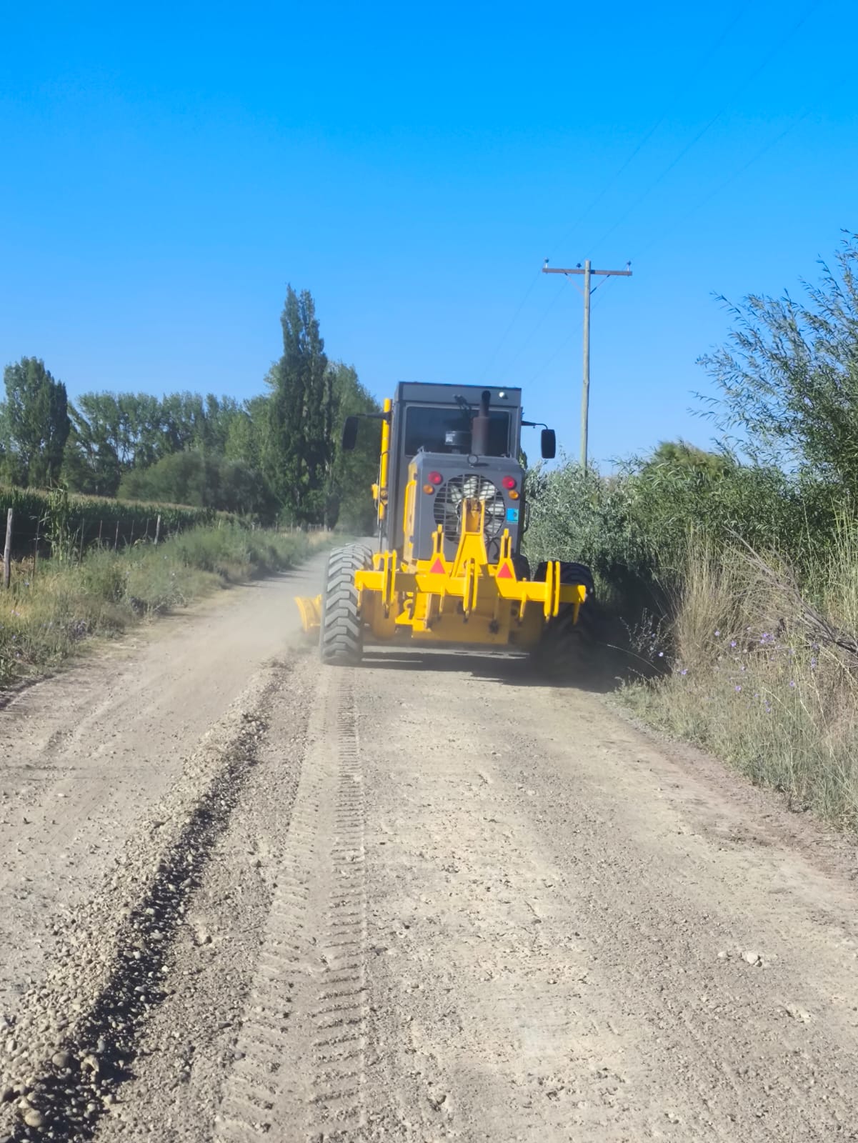 El mantenimiento de los caminos en las chacras forma parte de una planificación sostenida que se replica también en los barrios y accesos de la ciudad, atendiendo una red vial extensa que requiere presencia permanente del Estado municipal.