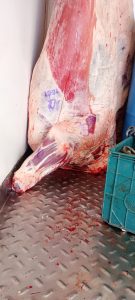 Hacia el mediodía, se verificó la carga de un rodado marca Ford conducido por un vecino de Chimpay que circulaba uniendo Coronel Belisle con Lamarque, detectándose el traslado de dos medias reses bovinas en un vehículo térmico incumpliendo condiciones adecuadas de higiene y resguardo, ya que la carne estaba en contacto directo con superficies internas del camión. En este caso, se labraron las infracciones y se ordenó el retorno de la carga a su establecimiento de origen.