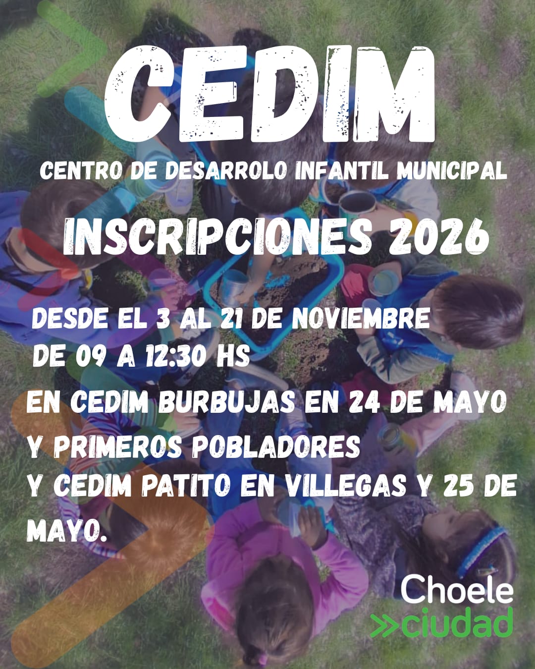 Las inscripciones serán tomadas en el CEDIM “PATITO” situado en calle Villegas esquina 25 de Mayo, y en el CEDIM “BURBUJAS” de Barrio Maldonado en calle Primeros Pobladores y 24 de Mayo.-