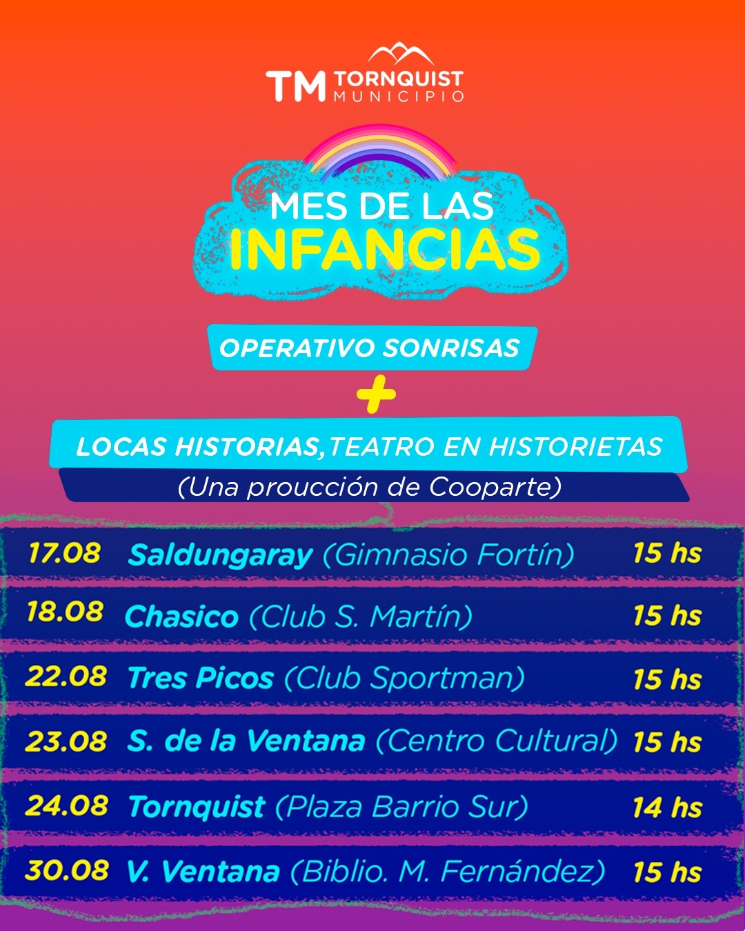24/8: Tornquist – Plaza Barrio Sur, 14 hs;