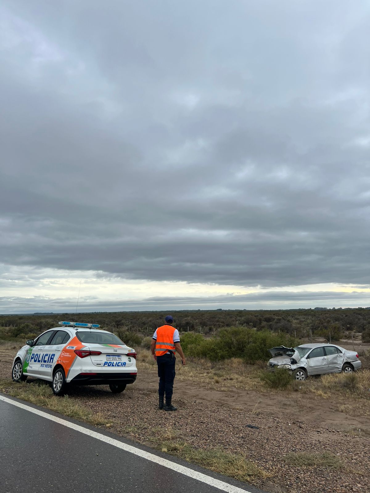 Todo quedó aclarado cuando, el conductor del vehículo siniestrado, un hombre de 31 años con domicilio en General Roca, se acercó al lugar y contó que iba circulando en sentido norte–sur y, por motivos no determinados, perdió el control del rodado, ocasionándose el despiste seguido de vuelco.