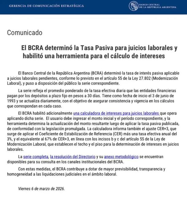 Ambos parámetros estaban previstos en los incisos b y c del artículo 55 de la reforma laboral, que establecen un techo y un piso para la determinación de intereses en juicios laborales.