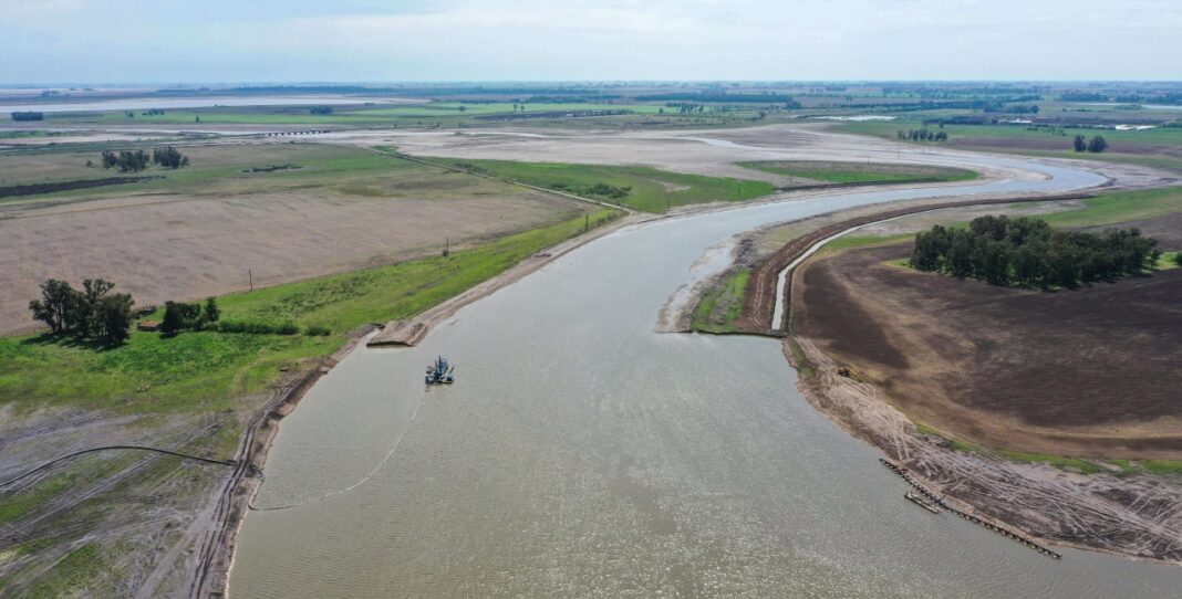 “Se amplía la sección primaria del río y se ejecutan nuevas secciones a cada lado, llamadas recintos, que son rellenadas con el material recuperado mediante el dragado para absorber las crecidas. Esto, a su vez, posibilitará que las áreas alrededor del Salado, que suelen quedar anegadas, puedan ser utilizadas para la producción”, detallaron desde el Ministerio de Infraestructura.