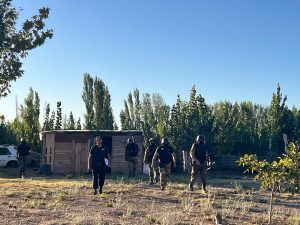 Otro grupo de tareas hizo lo propio, trabajando en un peinado a pie de un sector de la localidad, contando con la presencia de un nutrido grupo de agentes de la Regional IV, personal de la Brigada de Investigaciones, los COER de Valle Medio, Villa Regina, las Brigadas Rurales de la región y de General Conesa, la policía montada y canes de General Roca, la Comisaría 17 y la Brigada de Investigaciones, quienes recorrieron minuciosamente el sector que va desde calle Francia en cercanías del ex canódromo hacia el cuadrante sur.