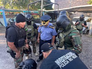 Hacia el final del día, entre las 18,30 horas y las 22,30 horas, por disposición de la Dra. Chávez – Jueza de Garantías – se realizaron cuatro diligencias de allanamientos simultáneos en distintas viviendas y sectores urbanos y rurales de la ciudad de Lamarque.