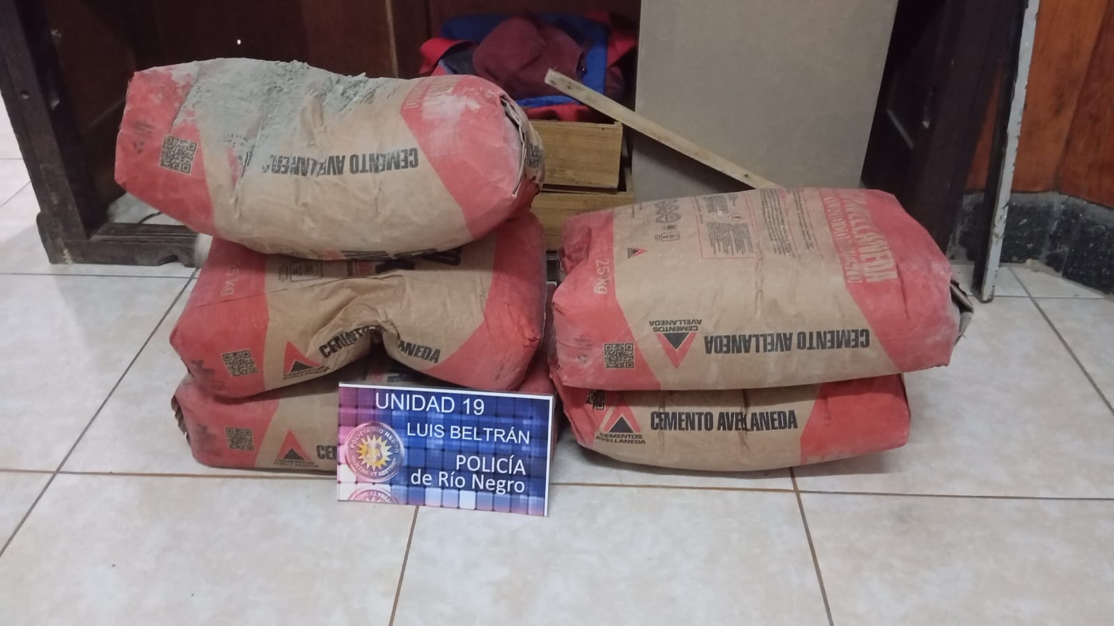 Al arribar, los efectivos observaron a dos individuos extrayendo bolsas de cemento.