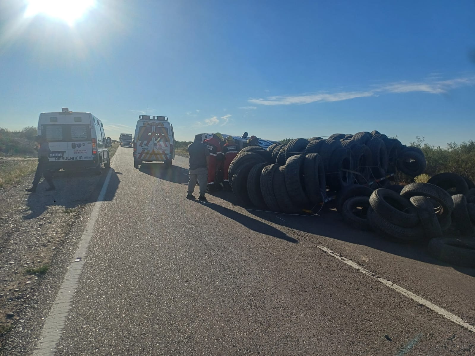 Una camioneta Toyota Hilux con su acoplado, ambos cargados de cubiertas usadas, había salido de Chelforó en dirección a Bahía Blanca.