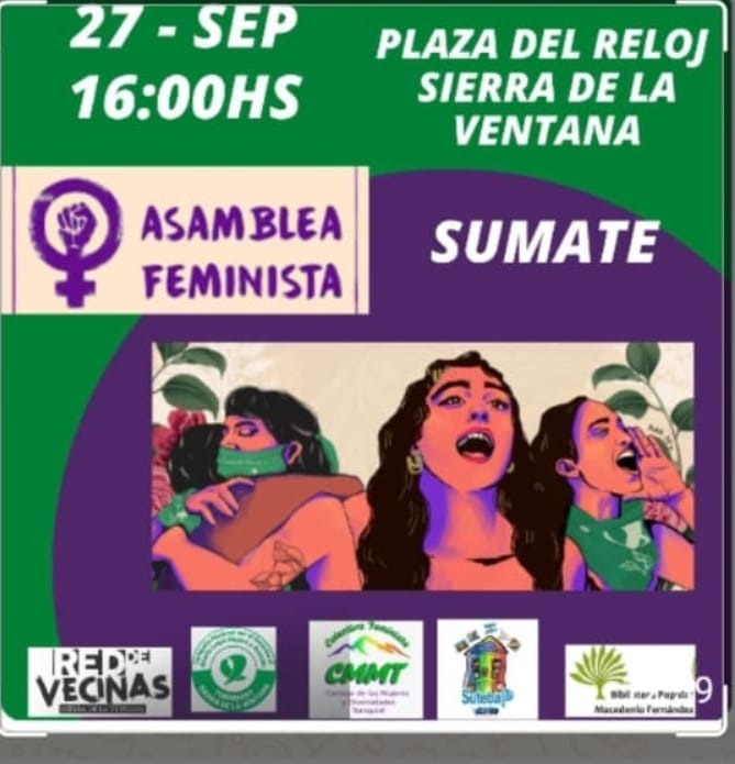 Este sábado 27 de septiembre, a partir de las 16 horas, se llevará a cabo una asamblea feminista en la plaza del reloj de Sierra de la Ventana. La convocatoria, bajo el lema «Paren de matarnos», busca unir a la comunidad en torno a la lucha por los derechos de las mujeres.