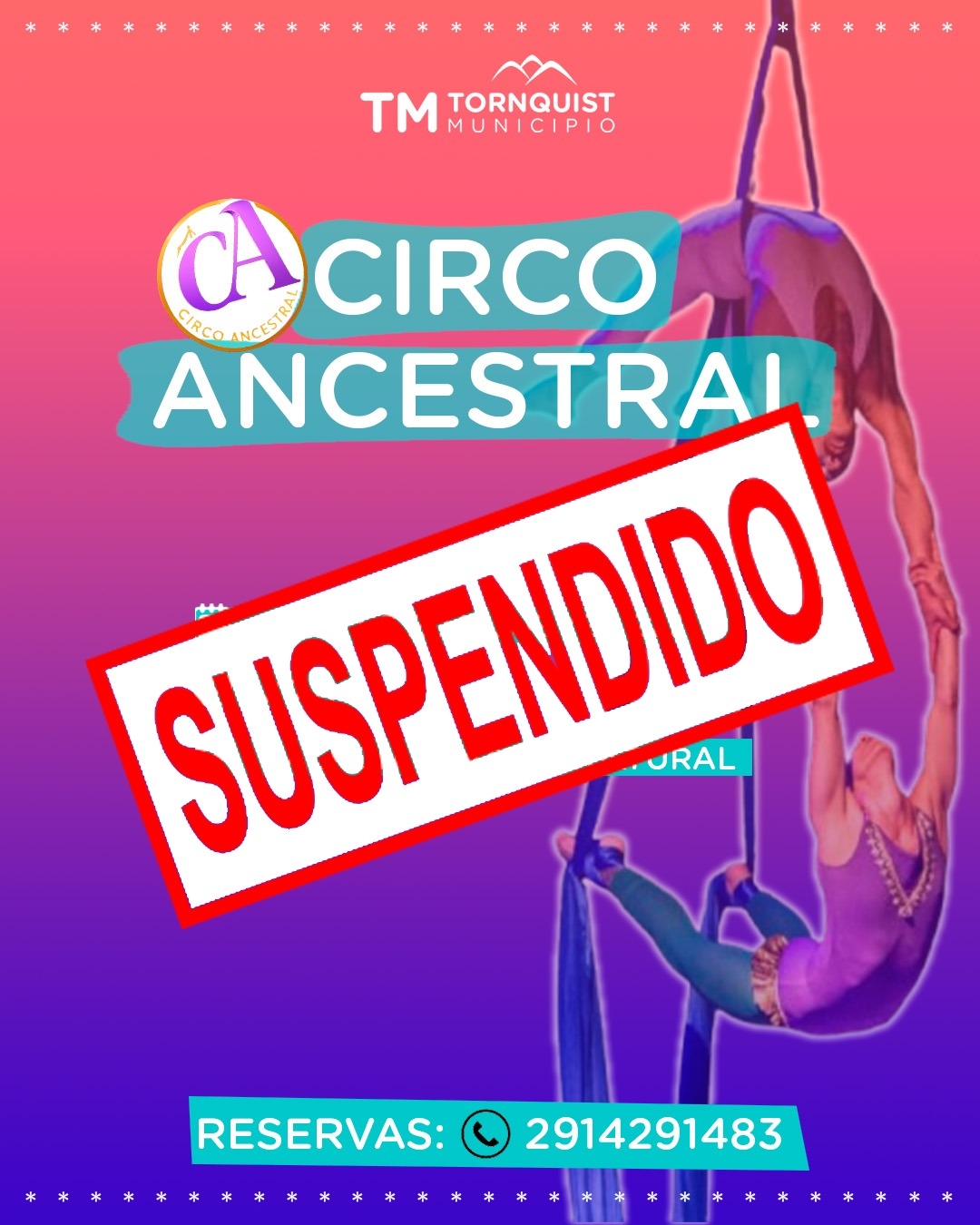 Leer másDetailsLa Subsecretaría de Cultura informa que fue suspendida la presentación de Circo Ancestral, programada para el 20 y 22 de enero en el Centro Cultural de Sierra de la Ventana.