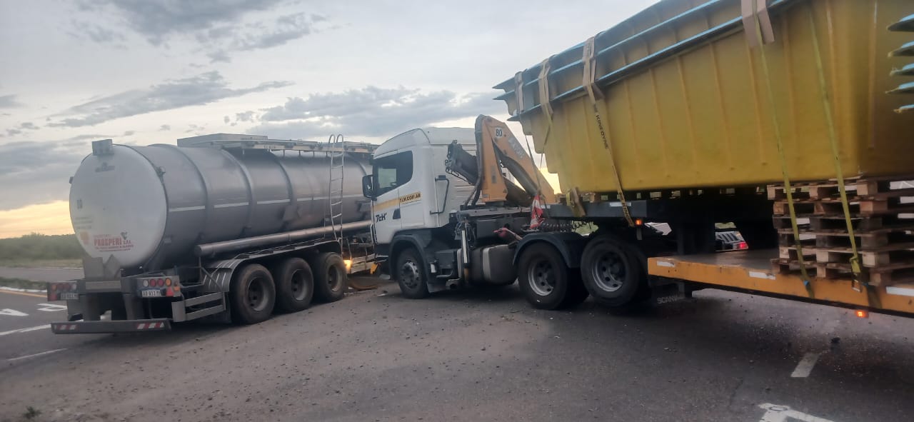 Esta oportunidad tuvo por protagonistas a dos camiones y, si bien solo se produjeron daños materiales, el tránsito por el lugar se vió dificultado ya que uno de los rodados involucrados hizo un efecto «tijera» y ambos quedaron atravesado sobre la ruta.