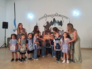 Darle las gracias a este reconocimiento que el Concejo Deliberante hoy tiene para con nosotros, con una institución que está comenzando a transitar casi sus 40 años, nuestro jardín, el próximo 17 de abril cumple 40 años. Surgió una necesidad de un proyecto de Guille que siempre va más allá, lamentablemente hoy Romina Luján que es la docente del turno tarde que acompañó este proyecto, está jurando su cargo como directora de otro jardín vecino de la localidad de Dufaur, y no pudo llegar, pero nada se podría hacer posible, primero que las docentes siempre tienen ideas innovadoras y yo solamente acompaño este proyecto. Guille es una docente para nosotros que valoramos muchísimo y está en sus últimos meses porque ya llega su jubilación y no la queremos soltar porque ese tipo de docentes que trabajan tanto para la comunidad educativa, para un jardín donde ha dejado su corazón, tanto los papás como yo, estamos con sentimientos encontrados. Yo sé que ella no puede hablar porque está transitando este periodo de ir un poquito despidiéndose. Gracias, y nada se haría posible en este jardín sin los papás, nosotros estamos en un extremo que está creciendo mucho el barrio sur, su entorno, sus plazas, la comunidad del barrio sur cada vez es más fuerte y estos papás nos siguen a todos lados, a estos papás les decimos vamos al museo, vamos a la plaza, vamos a un parque, vamos a las vertientes. Guille tira una idea, yo la apruebo, tenemos siempre el apoyo de Jefatura Distrital, de Región que nos acompaña en todo y esos papás son los que hacen posible, junto con Mariano que se prende a muchos de nuestros proyectos. El año pasado nos subimos a un colectivo y recorrimos toda la localidad, nada sería posible sin la comunidad de padres y la comunidad educativa. Gracias por este reconocimiento que para nosotros es un montón. Muchísimas gracias.