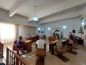 su Directora Mariel Llanos; las docentes Guillermina Mutti y Vanesa Aldaya; el profesor Mariano Spialtini, colaborador del proyecto; familiares y público en general. Se dio lectura a la Resolución Nº 30/25, y posteriormente la Concejal Marcela Gimenez le hizo entrega de una placa alusiva a la Directora del Establecimiento docente Mariel Llanos.