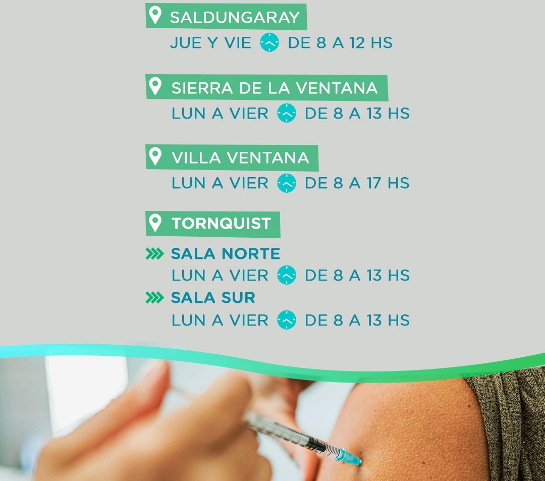 Saldungaray – Unidad Sanitaria: Jueves y viernes de 8 a 12 hs;
