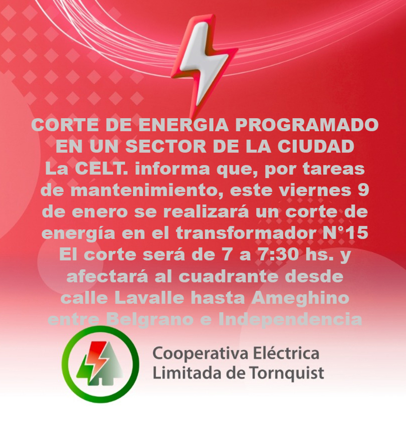 TORNQUIST: Corte programado de energía en un sector de la ciudad