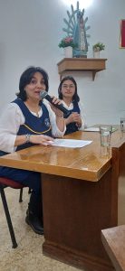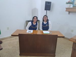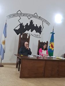Buenas noches, señora Presidente, buenas noches a todos los miembros del Honorable Concejo Deliberante. Bueno, como ya nos presentaron, Antonella y yo estamos en quinto año de educación primaria en el Colegio Nuestra Señora de Luján, y en el ámbito de la clase de ciencias sociales, surge esta propuesta a raíz de la inquietud de los chicos de que había muchas fiestas provinciales, muchas fiestas nacionales e incluso salieron fiestas que nosotros tenemos acá en el distrito, pero no figuraba ninguna fiesta que nos distinguiera como ciudad ¿si? Así que bueno, comenzamos, a raíz de esta inquietud de los chicos, comenzamos a buscar profesionales que pudieran ayudar o que pudieran acompañarlos en este proceso que ellos querían, porque ellos querían una fiesta para Tornquist. Así que bueno, la primera persona que nos ayudó fue el antropólogo Gonzalo Iparraguirre, que les brindó una charla a los chicos explicándoles las formas de investigar, y de la importancia de las fiestas y de las características de las fiestas. A raíz de eso ellos empezaron a ver qué tipo de fiesta querían y bueno, arranca todo un proceso de los chicos y con Antonella nos había tocado en suerte la feria de ciencias, no teníamos claro cuál iba a poder ser el tema, y la verdad que los chicos nos dieron ese empujoncito, así que decidimos seguir adelante con este proceso.