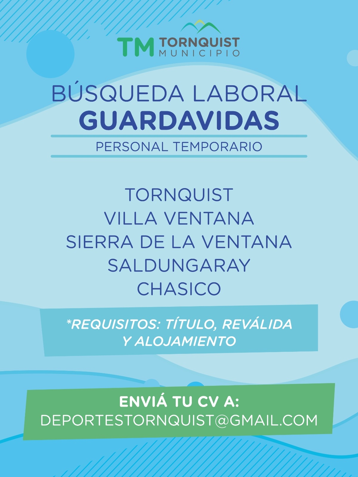 Los interesados/as deben enviar CV a deportestornquist@gmail.com.
