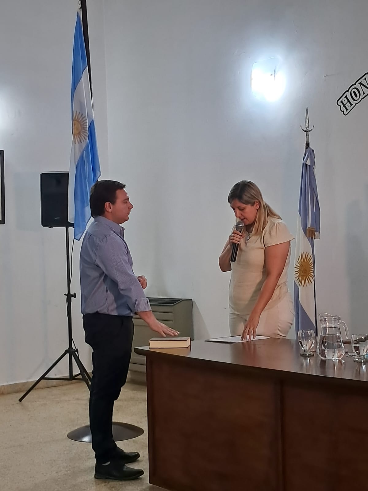 Bueno, para cerrar la etapa de agradecimientos y este ciclo, me sumo al agradecimiento de los Concejales en cuanto al trabajo de las chicas de acá del Concejo, de Mónica, de Fátima, de Natalia, de Mabel. Gracias por el acompañamiento de estos 2 años, la verdad que como dicen todos, es técnicamente imposible salir adelante si ustedes no están apoyando y trabajando como trabajan con compromiso todos los días y la responsabilidad y el amor por el lugar, ¿no?, porque al ser personal de planta permanente, llevan mucho tiempo acá y sabemos del compromiso y de hecho queda claro porque todos acá estamos agradeciendo lo mismo. También sumar al agradecimiento a todos los Secretarios de los Bloques porque la verdad que hemos tenido, yo creo, una muy buena convivencia. El trabajo, si bien cada uno está abocado a sus concejales, pero siempre ha sido con mucho respeto y en un clima muy ameno, así que muchas gracias a todos los secretarios de todos los bloques. Agradecerles a los concejales, a todos en general por el apoyo, por muchas veces darnos una mano, principalmente a mí que muchas veces por ahí desconocía algunos temas o realmente en situaciones complejas que hemos tenido discusiones, yo creo que siempre la supimos a llevar a buen puerto, porque disensos podemos tener, pero lo importante es que podamos ponernos de acuerdo en algún punto y avanzar y poder cumplirle a la gente que en realidad nos puso en este lugar. Gracias a todos los concejales que siempre nos han dado una mano a esta Presidencia, por lo menos para que sean estos 2 años realmente amenos para todos y que podamos trabajar como teníamos que trabajar, con responsabilidad y con compromiso de parte de todos los concejales. Yo creo que más allá de las discusiones que por ahí han sido acaloradas y de todas las situaciones que hemos pasado, que algunas no han sido buenas y otras han sido de festejos y de agasajos, hemos podido siempre en algún punto trabajar en conjunto, ponernos de acuerdo y trabajar para la comunidad que es en realidad a lo que nos debemos, más allá de todos los partidos políticos que obviamente cada uno defiende al suyo, pero yo creo que lo importante es que todos acá trabajemos para la gente y por la gente. Y bueno, por último y para no extenderme demasiado, quiero hacer un párrafo aparte para Juli, la Secretaria del Concejo, agradecerle Juli, gracias por tu compromiso, por tu lealtad, por tu voluntad, porque como dijo Marcela, no tenés horarios siempre a disposición, para mí principalmente y para todos los concejales, yo creo que has sabido honrar el lugar que te tocó y para el cual te eligieron. Te agradezco Juli porque la verdad que sin vos no hubiese sido posible. Gracias por poner el cuerpo, por la dedicación, por tu compromiso como todos, para y por la gente. Así que te lo agradezco de corazón, Juli. Muchas gracias. Muchas gracias y bueno, agradecerles a todos y desearles a los concejales que hoy dejan sus Bancas, que tengan éxito y que como dijo Marcela, sigan trabajando cada uno desde su lugar por el bien de nuestro distrito y de todos los pueblos de nuestro distrito, de no hacer hincapié solamente en el lugar en el que vivimos, sino poder llegar a todos los vecinos que más nos necesitan. Así que muchas gracias a todos.