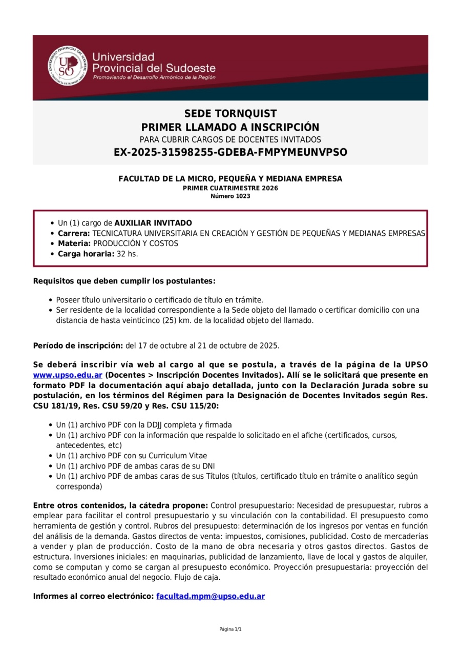 Leer másDetailsLas inscripciones se realizarán del 17 al 21 de octubre.