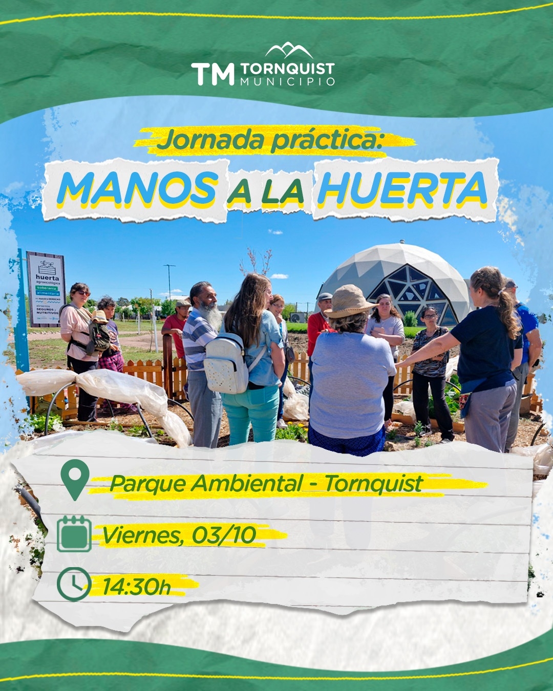TORNQUIST: Manos a la Huerta «habrá una jornada practica sobre Huerta Agroecológica»  Este viernes 3 de octubre, tendrá lugar una nueva jornada sobre Huerta Agroecológica, impulsada por la Subsecretaría de Ambiente y Desarrollo Sostenible de Tornquist Municipio.