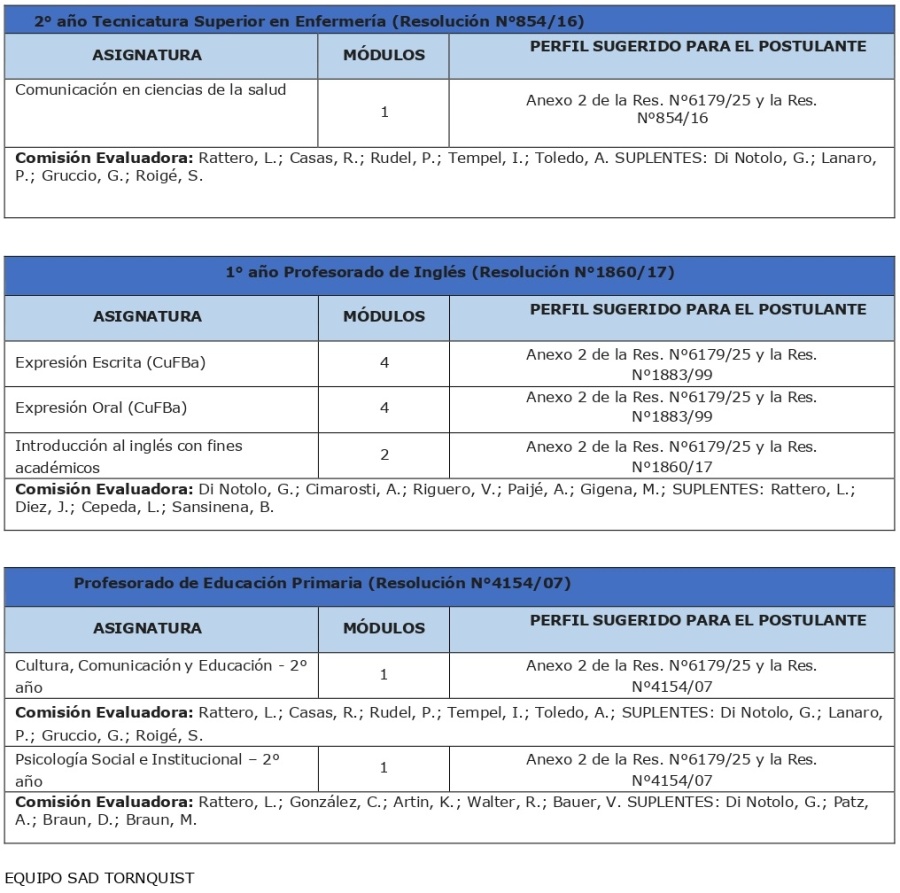 TORNQUIST: SAD COMUNICADO OFICIAL N° 49: 3° LLAMADO A COBERTURA HS. CAT ISFDyT 162