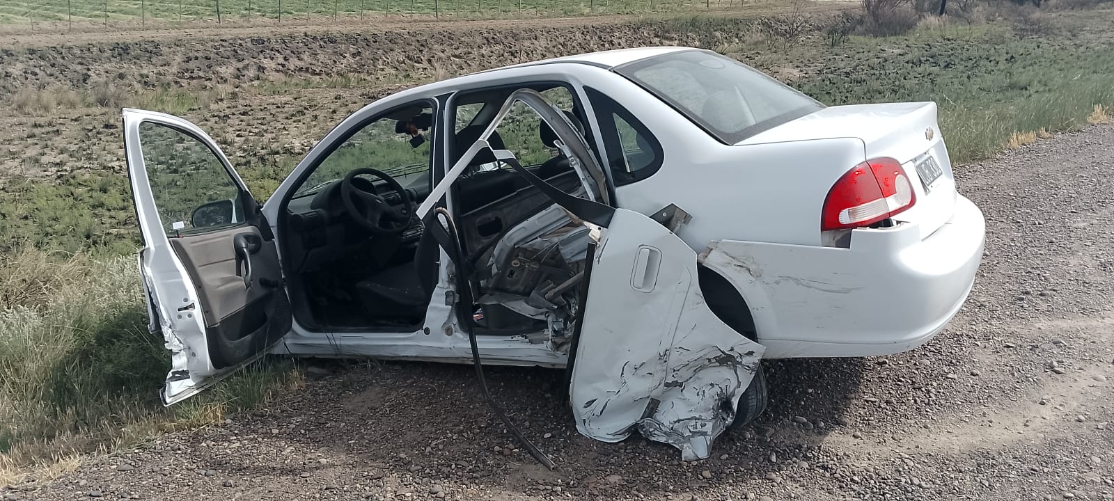 De acuerdo a las primeras averiguaciones, el conductor del Ford Fiesta habría perdido el control de su rodado, mordiendo la banquina, e impactando de forma frontal sobre el lateral izquierdo del Chevrolet, a la altura de la puerta trasera.