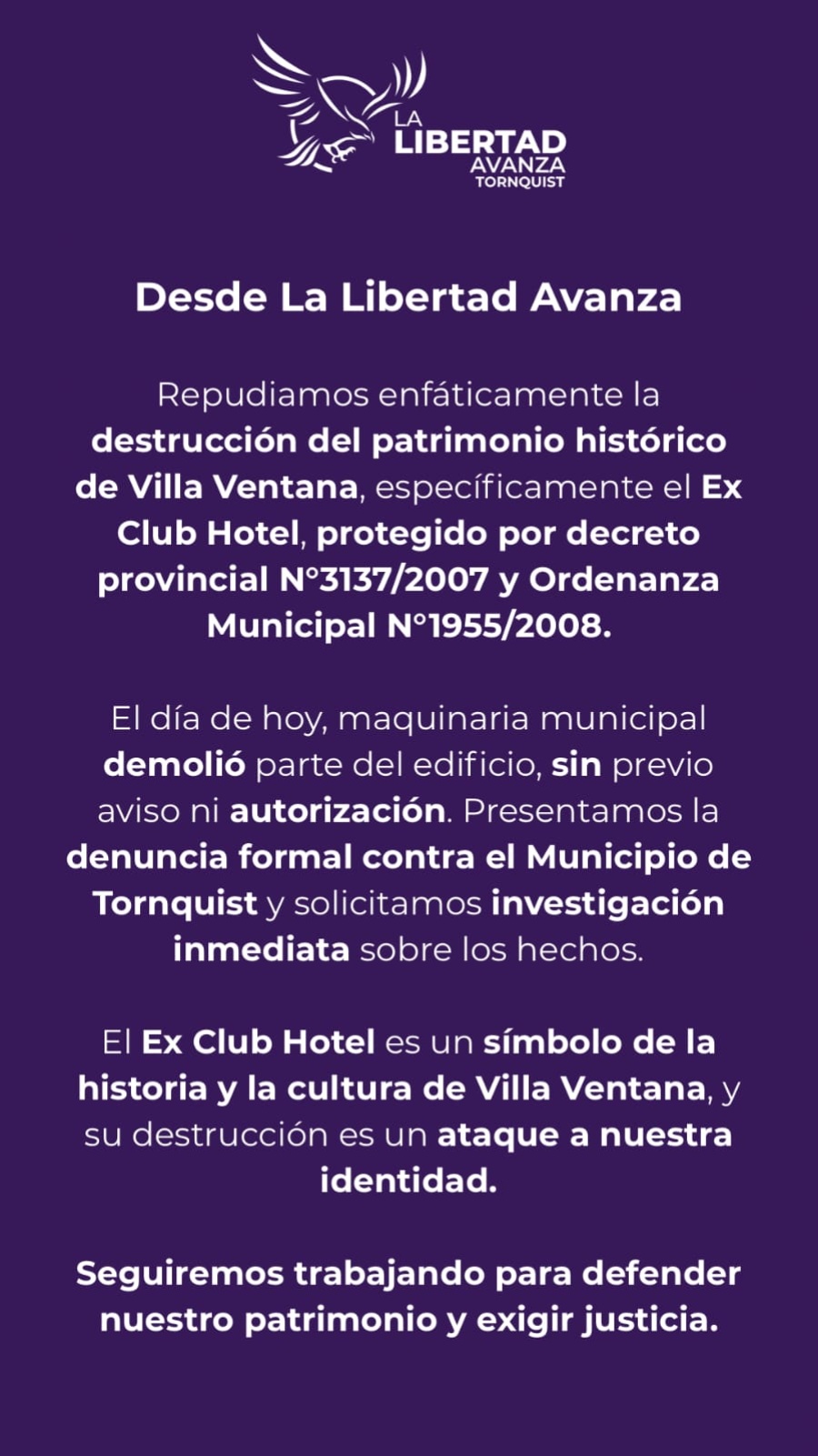 Leer másDetailsDesde el espacio de Villa Ventana acusan al Municipio de Tornquist de intervenir un edificio protegido y reclaman una investigación inmediata.